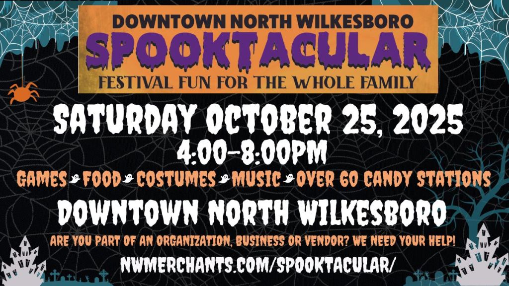 A few years ago several downtown North Wilkesboro business owners got together to brainstorm some events we could do downtown. We decided to throw a downtown Halloween street party, but we need your help! We will be looking for craft vendors, musicians, local businesses, nonprofits and more to get involved! Come sell your goods or promote your business or services.